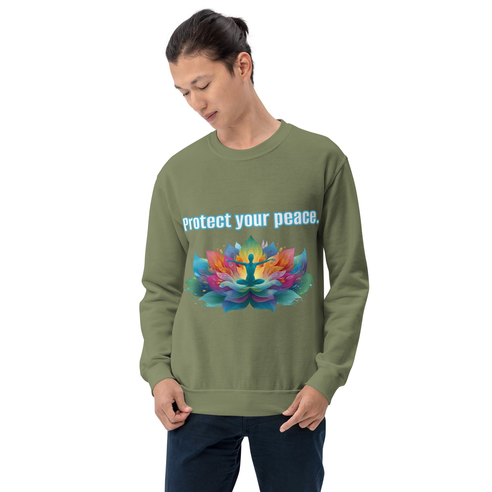 This "Protect your peace" graphic unisex sweatshirt from Women Go Swish promotes mindfulness with a sporty style. Made with air-jet spun yarn for a soft feel, it's perfect for colder months. Balance is key to the core values of Women Go Swish. • 50% cotton, 50% polyester • Pre-shrunk • Classic fit • 1x1 athletic rib knit collar with spandex • Air-jet spun yarn with a soft feel • Graphic Sweatshirt double-needle stitched collar, shoulders, armholes, cuffs, and hem