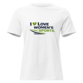 Show your support for women in sports with our "I Love Women's Sports" white t-shirt! Made from soft, breathable fabric, this tee offers comfort and style for any casual outing or workout. The front features a bold "I Love Women's Sports" graphic, while the back showcases the empowering "Power in Her Swish" slogan. Perfect for the gym, games, or everyday wear, this shirt is a statement piece for any female athlete or sports enthusiast. Available in various sizes, it’s a must-have for your wardrobe!