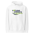 Introducing the ultimate blend of style and comfort: the **I Love Women's Sports** Pull-over Hoodie! This chic piece features a relaxed fit crafted from ultra-soft fabric, perfect for staying cozy on those chilly days. Its versatile white tone effortlessly complements any outfit, making it a staple in your wardrobe. With a spacious hood for extra warmth and a convenient front kangaroo pocket for hands or essentials, this hoodie combines functionality with fashionable flair. Elevate your casual look with the **I Love Women's Sports** Hoodie—where comfort meets modern style!