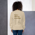 Make a statement with this meaningful unisex sweatshirt that embodies the spirit of Love and Peace. Designed with intention, it combines comfort and purpose in every wear. The blend of 50% cotton and 50% polyester creates a cozy layer that moves with you, while air-jet spun yarn delivers a luxuriously soft touch against your skin. Pre-shrunk construction keeps the fit true season after season, and the classic silhouette flatters all body types. Double-needle stitching reinforces every seam—collar, shoulders, armholes, cuffs, and hem—for lasting quality. The 1x1 athletic rib knit collar with spandex provides gentle support and flexibility. Ideal for layering through fall and winter, or wearing solo as a daily reminder of what matters most. Love & peace are core values promoted by Women Go Swish.